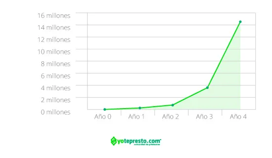 El crecimiento de la inversión fue así: para el final del cuarto año, los 60 mil pesos de la señora ya valían casi 15 millones de pesos.