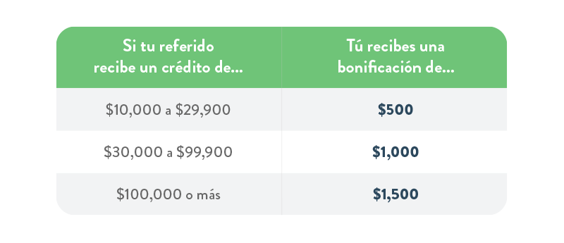Si tu referido comienza a invertir, tú recibes una bonificación. Y si solicita un préstamo y este es aprobado, también obtienes una recompensa.
